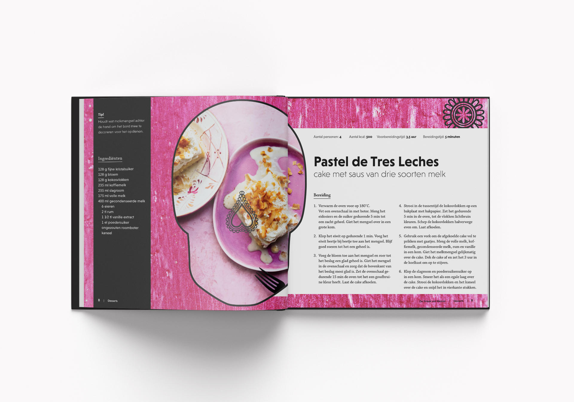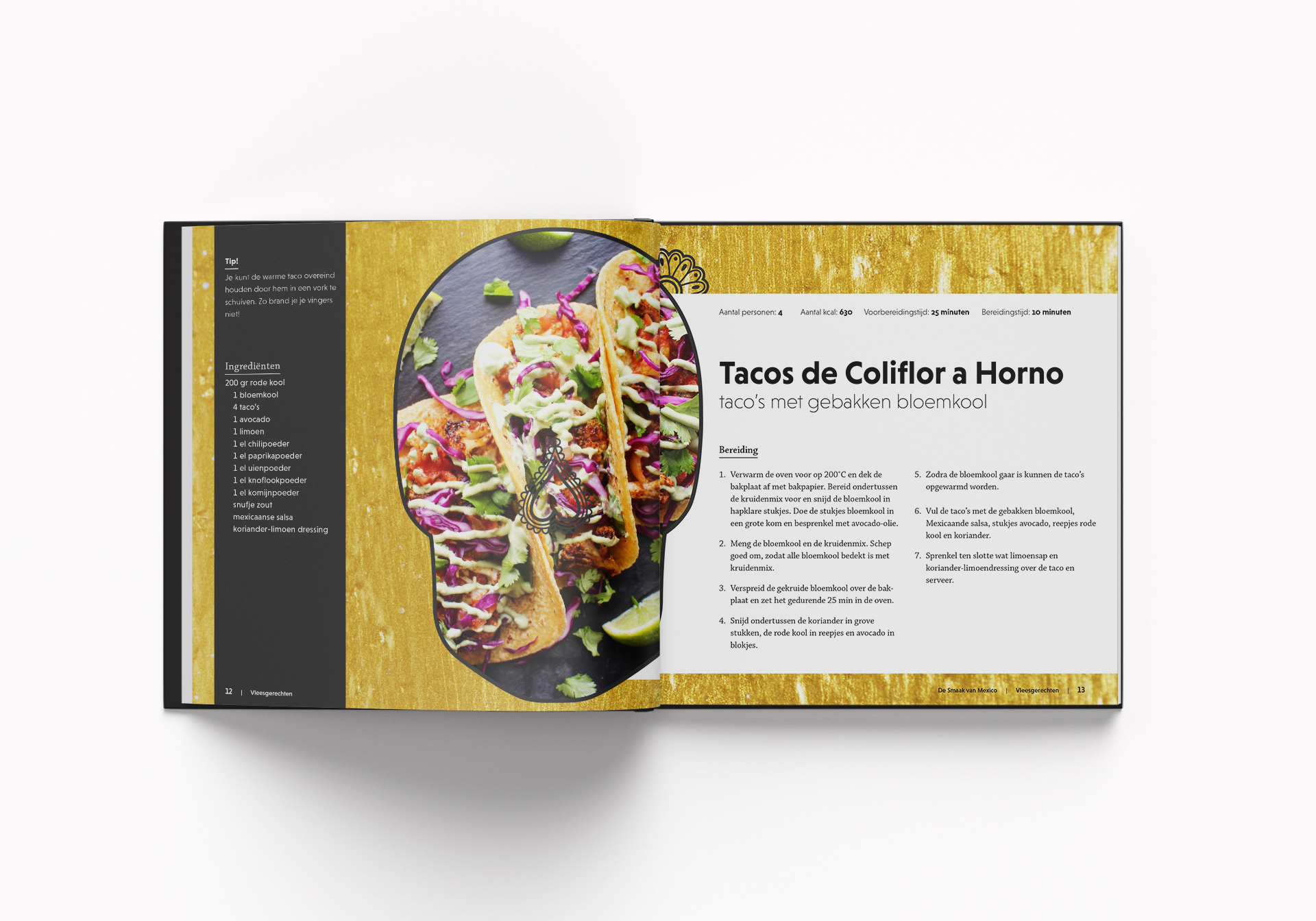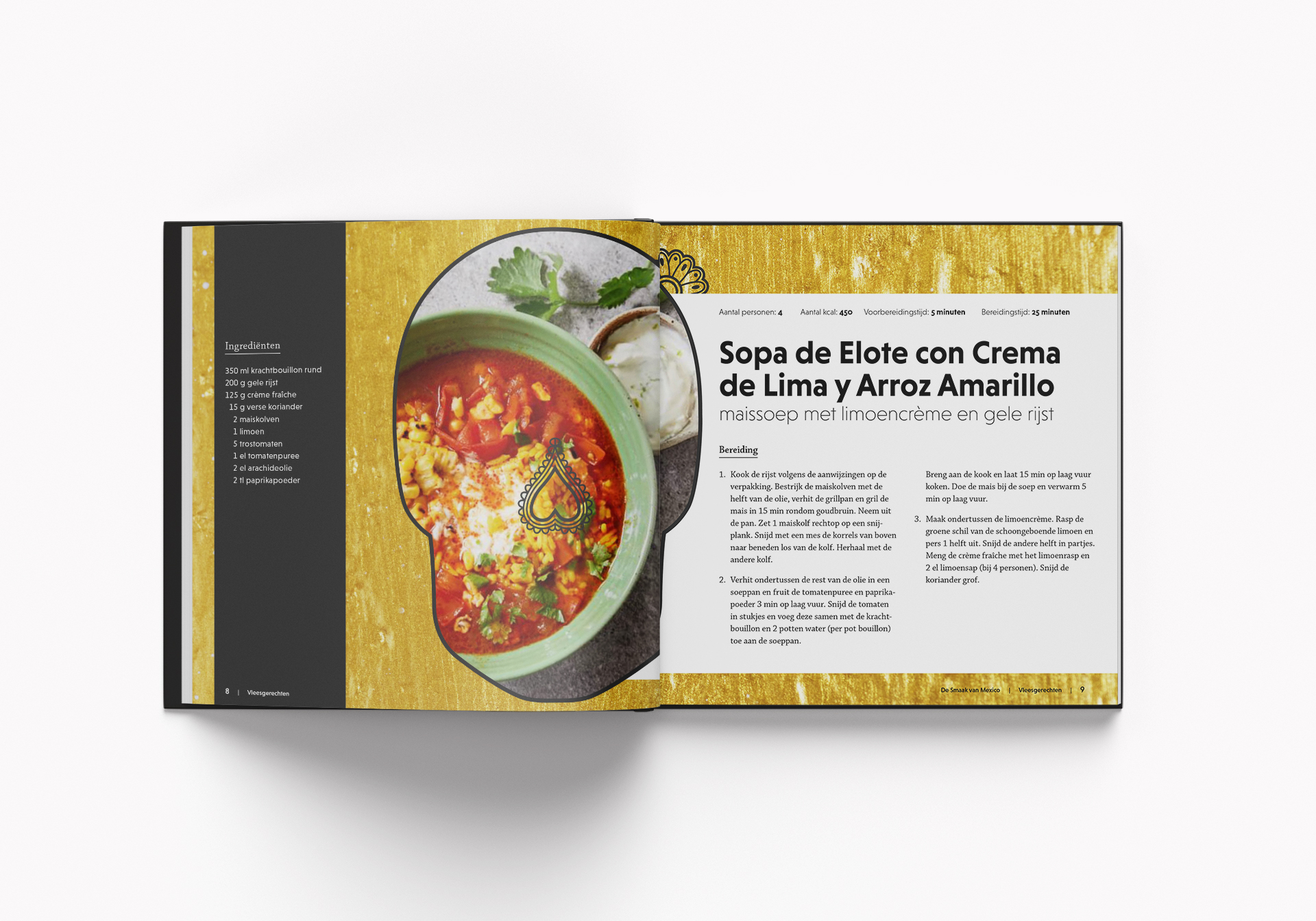 Dit was een opdracht van gmi designschool, als onderdeel van de opleiding Grafisch Ontwerpen 1. Het doel was het ontwerpen van een Mexicaans kookboek, alleen de afmetingen van het boek lagen vast in de opdracht.