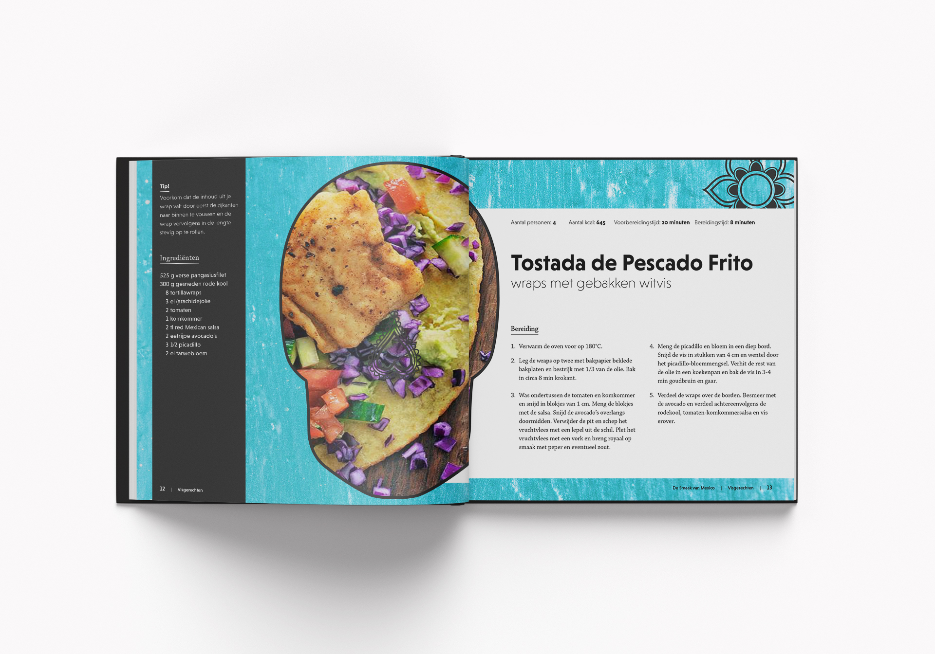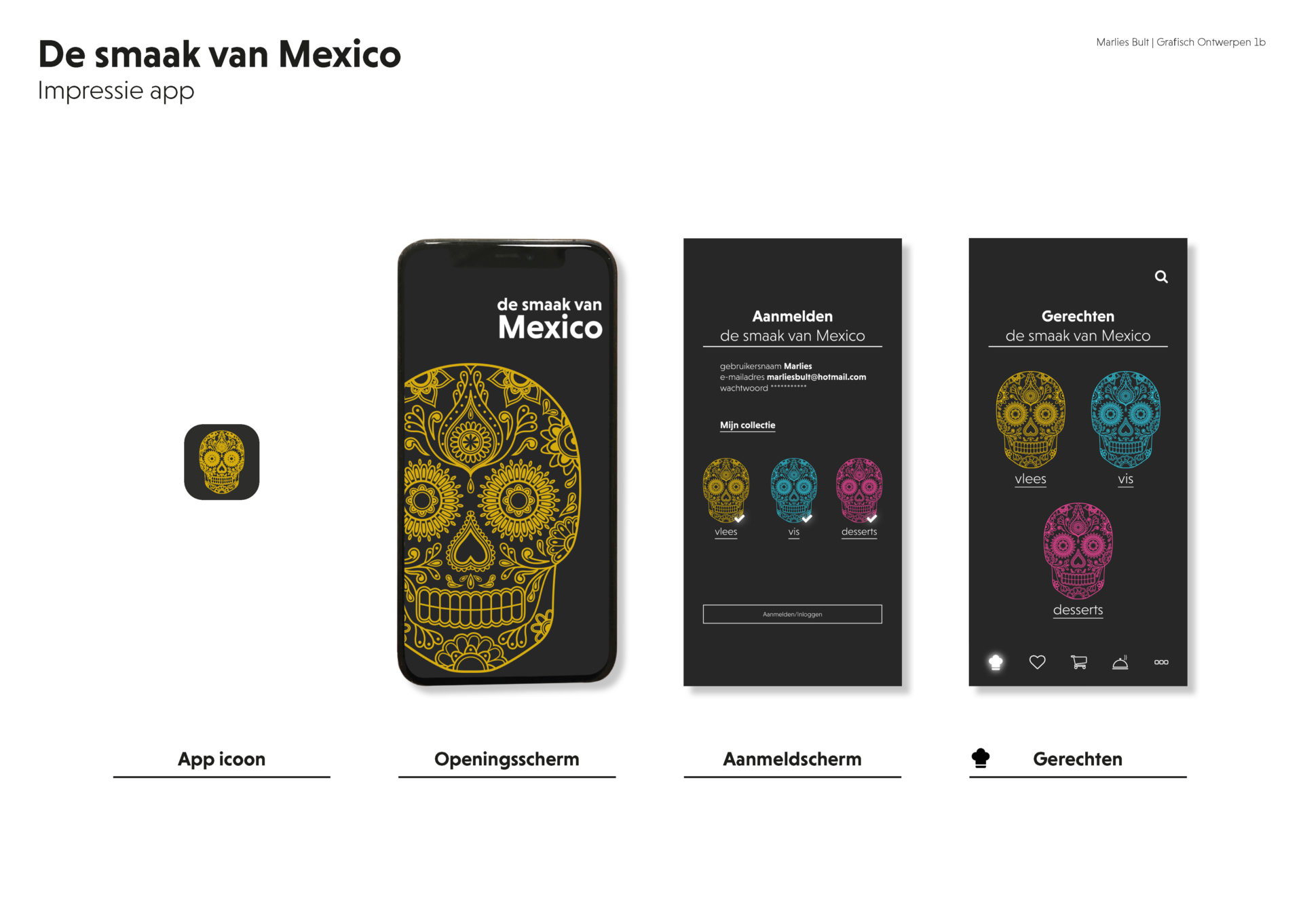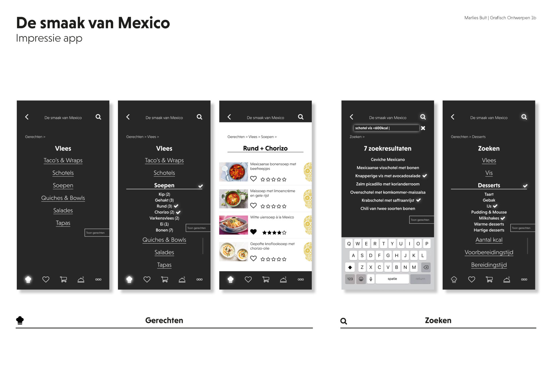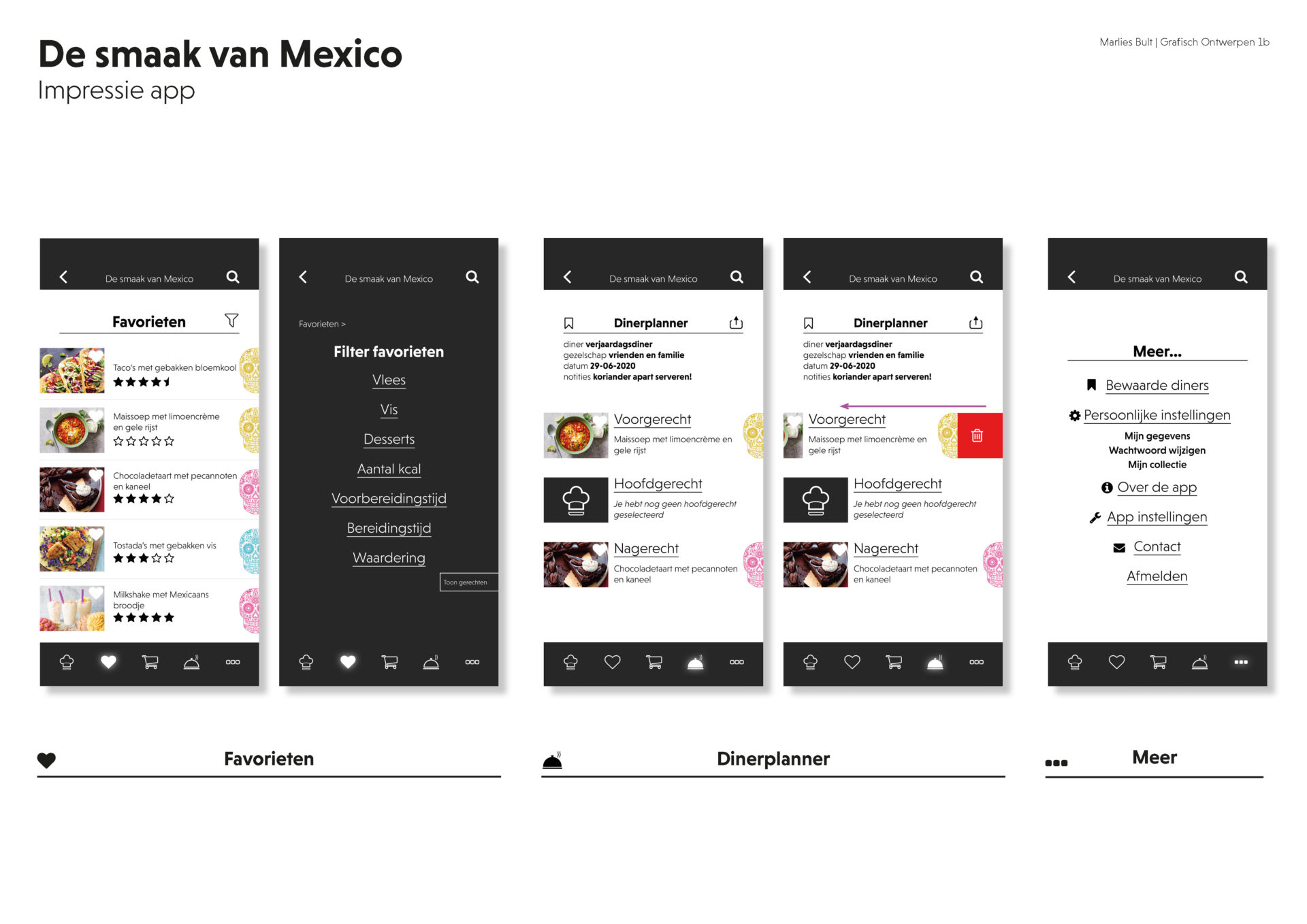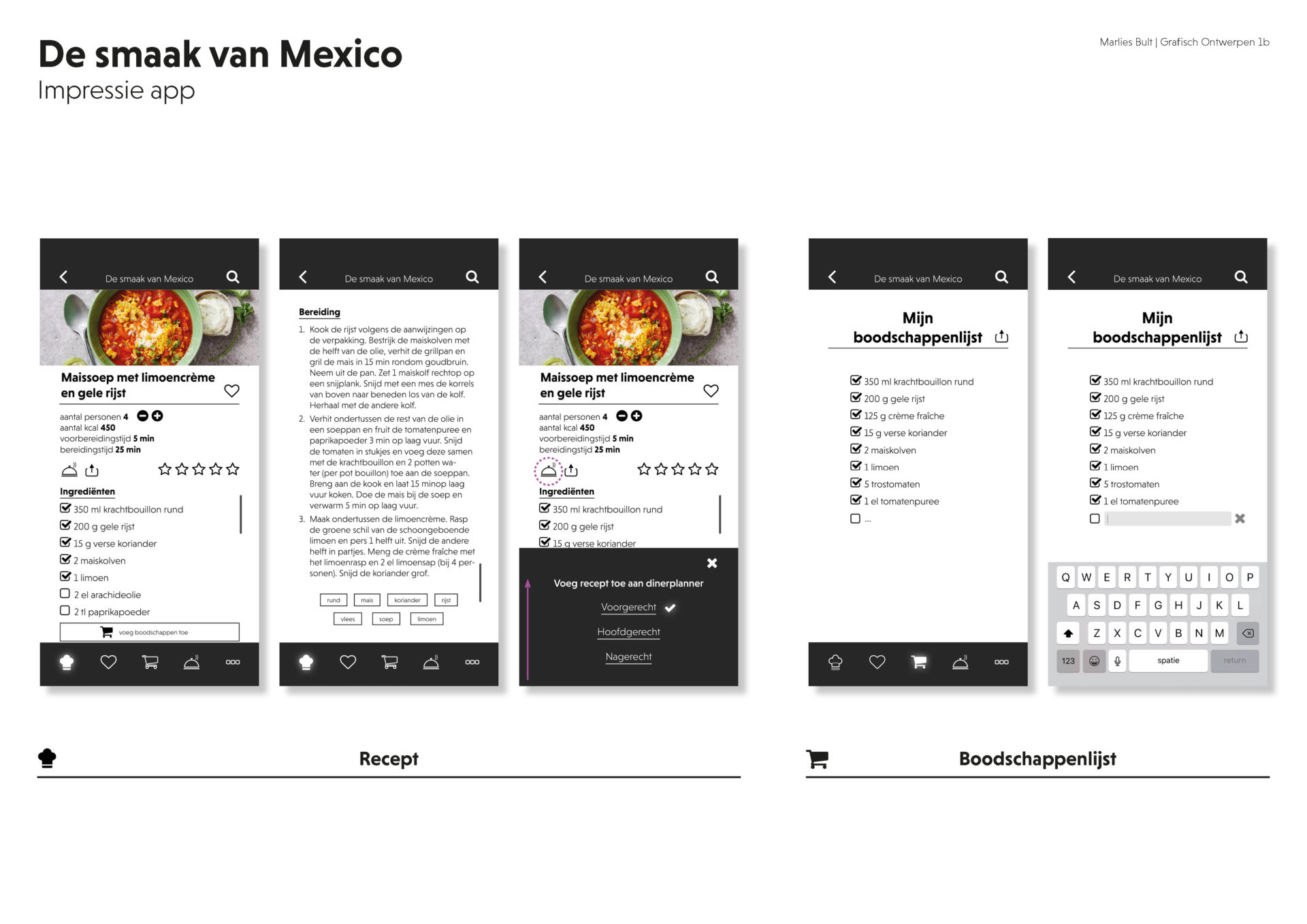 Onderdeel van de opdracht was het ontwikkelen van een ontwerp voor een app, gebaseerd op het kookboek De Smaak van Mexico.